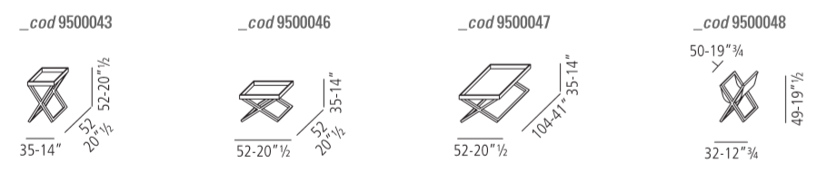 Chosen as furnishing accessories to complement sofas, armchairs, sofa beds, the 9500 coffee tables 043, 046, 047 bring style, fineness, quality and care for details to your home living and lounge rooms, as well as your office.