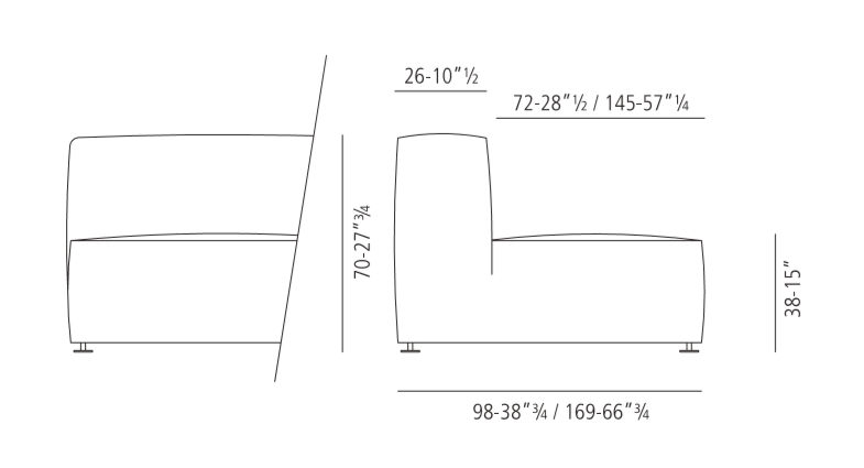 275 Glam is an extremely customizable sofa and can be combined in endless variants by choosing single elements with different sizes along with corner and end elements, which can also be without backrest and cushion. Also, armrest and backrest for the ottoman have been designed to be freely and easily moveable cushions characterized by a base that ensures stability. The ottomans' large sizes allow them to be used as stand-alone elements or as chaise-longues. Other ottomans with different sizes and heights are suitable to be used as comfortable seats.
