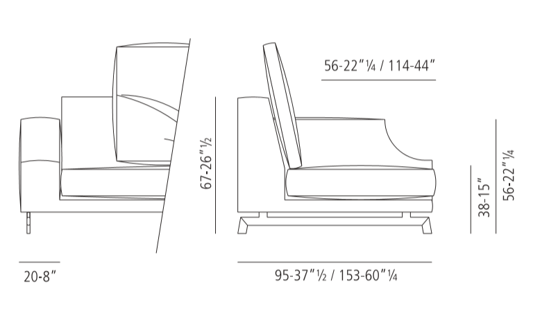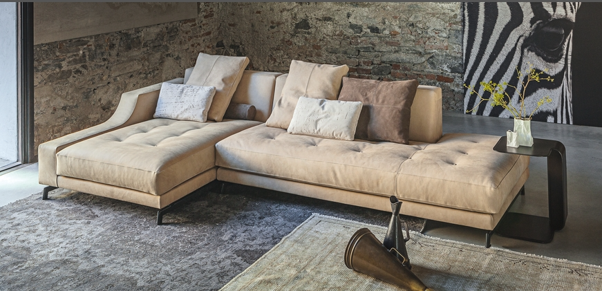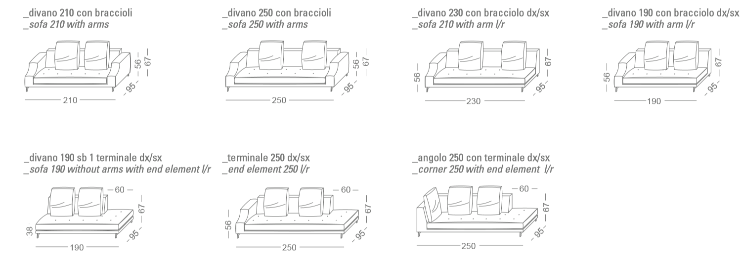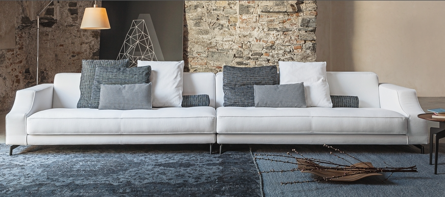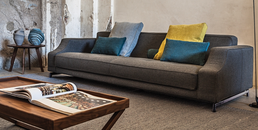 310 Identity is an extremely customizable sofa and can be combined in various variants by choosing single elements with different sizes along with corner and end elements, stand-alone sofas and chaise-longues that can be freely assembled. The backrest can be enriched with small cushions that can be freely placed and the armrest is enhanced by the design that reminds a neo-classical curve.