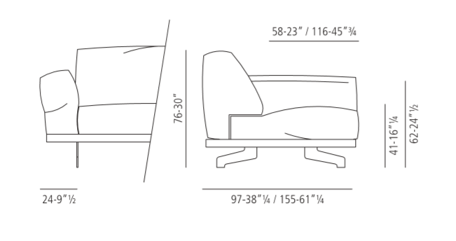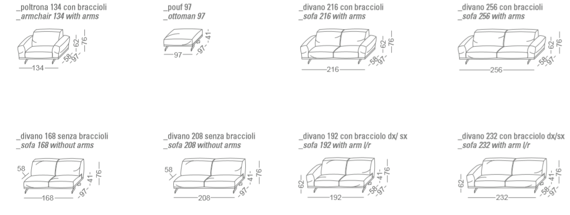 The sofa is manufactured with a metal, solid fir wood and plywood structure and has been designed with the utmost attention to style, fineness, quality and care for details that are typical of Interior Design Made in Italy.