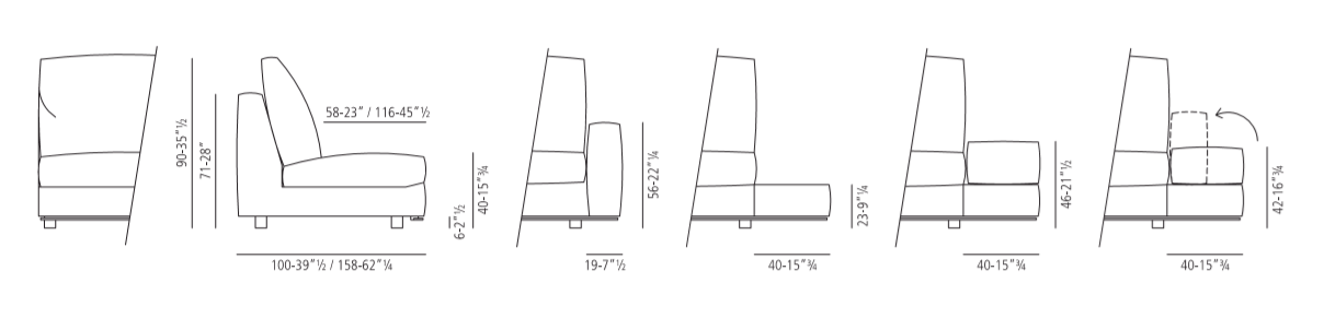 810 Fly is an extremely customizable sofa; it can be combined into numerous variants by choosing single elements with different sizes along with end elements with different depths, corner and open end elements, ottomans and chaise-longues that can be freely paired.