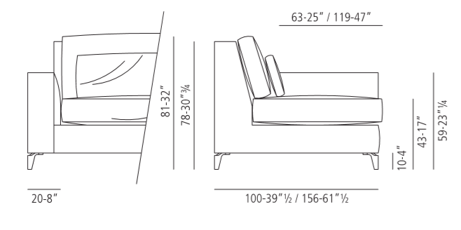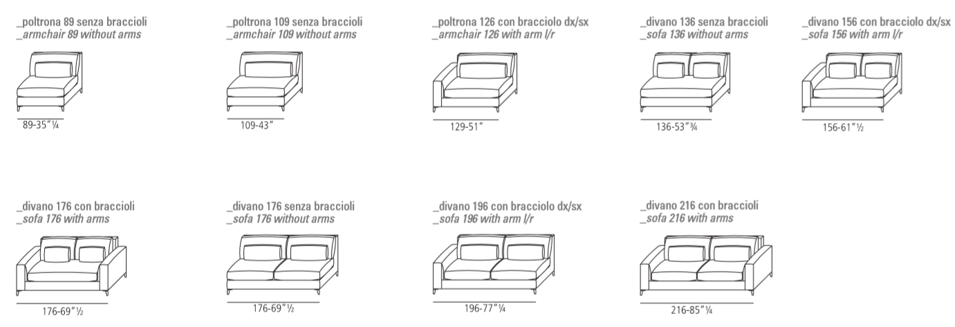 The most interesting features of the 910 ZONE Comfort XL sofa are the great depth of its seat, double cushions for its backrest, wide classical armrests and the Canaletto wood or aluminium feet, as well as the possibility to combine the sofa with ottomans and chaise-longues of different sizes.