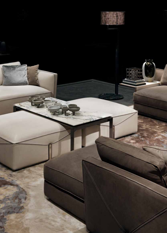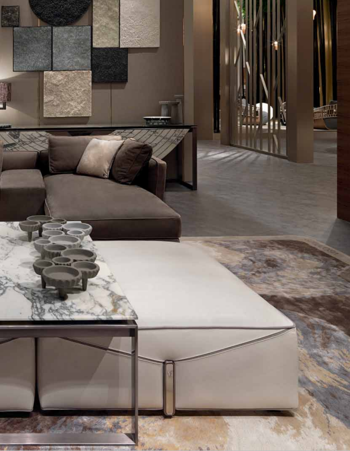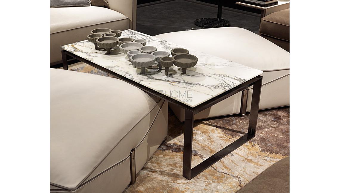 Tubolar structure in satinized stainless steel with low-profifile marble top. Satinized metal parts available in the metal fifinishing selection.