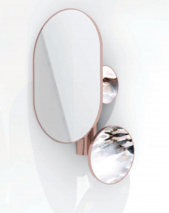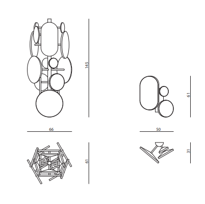 Chandelier and applique in chromed metal with light diffusers in Onyx and steel.