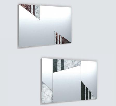 Mirror in marble and glass, frame in satinized stainless steel. Combination of marbles in different shapes and colours.