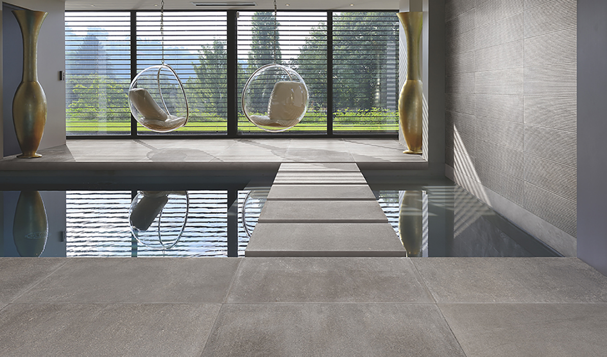 Dotcom is inspired by a limestone with a sandy consistency. Highlighting the sedimented pebbles which are its most distinctive feature, the collection's surfaces are attractively varied in patterning and shade. Four colours in the traditional sizes of 90x90, 45x90, 30x60, 60x60, 60x120 and 75x150 in natural finish, with 90x90 in tumbled and semi-polished finishes. In the technical version in sizes 60x60 and 60x120, the surface has outstanding anti-slip properties, making it perfect for public and private outdoor areas. The selection is completed by the decors Ruled, with an intriguing geometrical regularity, and Random, to give projects an unpredictable, dynamic touch. For interiors that combine natural elegance and character.