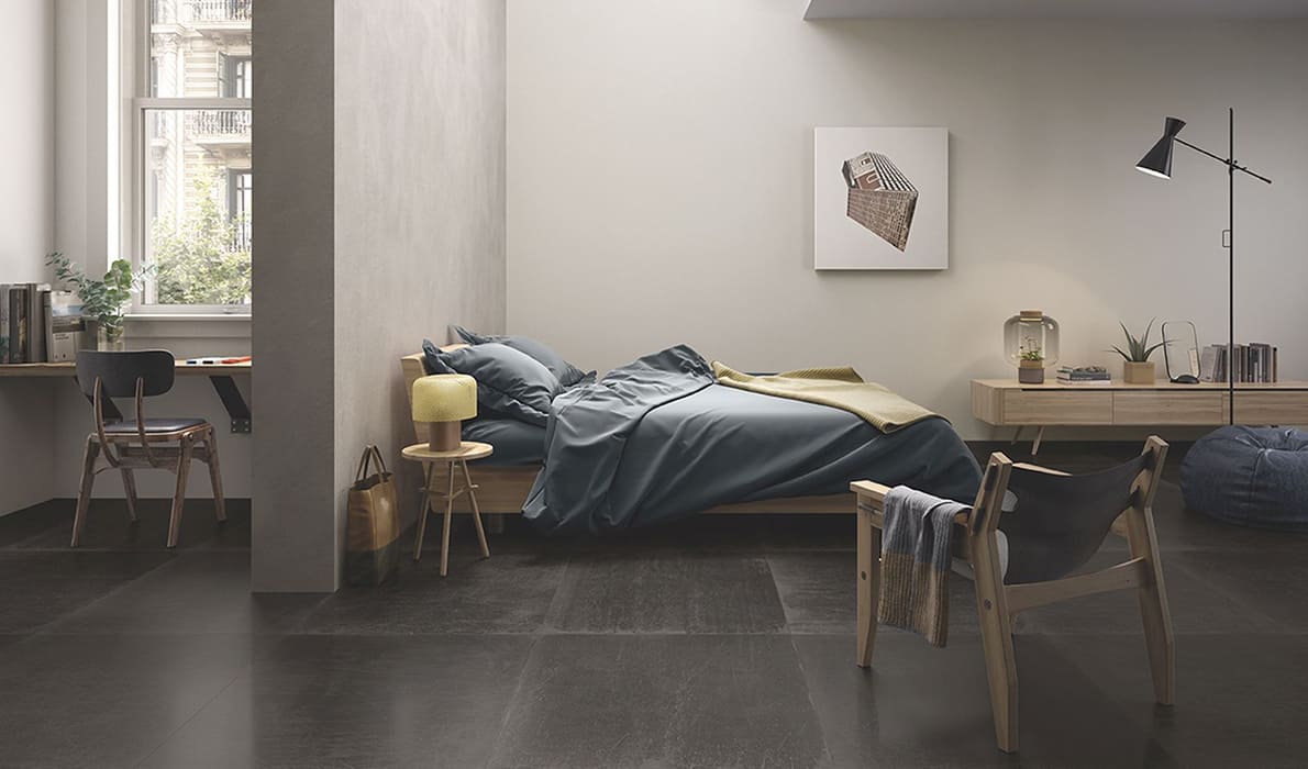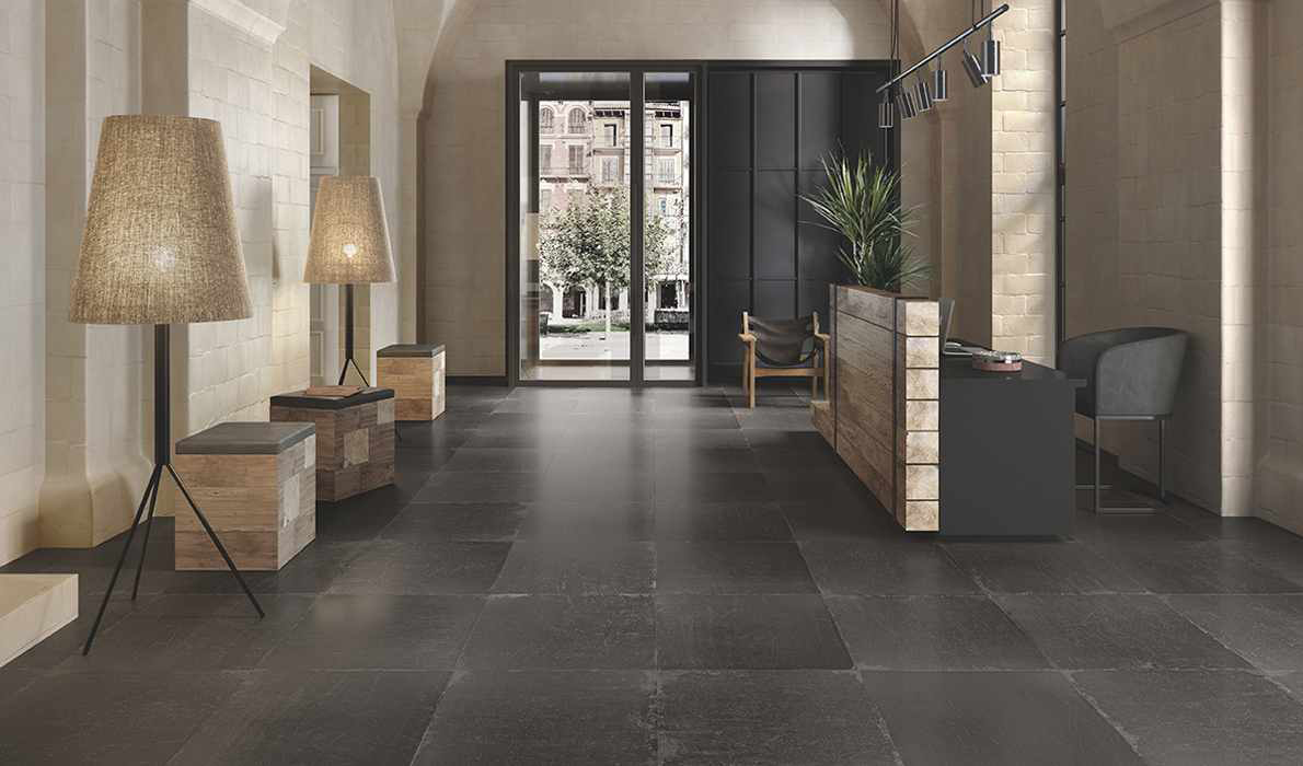 L'H by Viva is the Emilgroup ceramic collection of salvaged varnished woods that express the most intimate sensation of past time. Featuring the signs left by time, such as scratches and wear marks. The contrast between the original gloss of the varnished finish and the matt effect of the marks left by daily use tugs at the heart-strings. In this collection, daring design meets innovation in the production process. H exploits digital technology pushed to its highest levels, with matt and glossy material applied together to become an integral part of the tile's irresistible design. H is ideal for refined, sophisticated interiors with a youthful, contemporary mood. Offered in 4 natural colours, white, grey, ash and black, H is a collection destined to bestow originality and warmth on interior design schemes, while retaining all the technical specifications that give floorings excellent resistance to loads and chemicals.