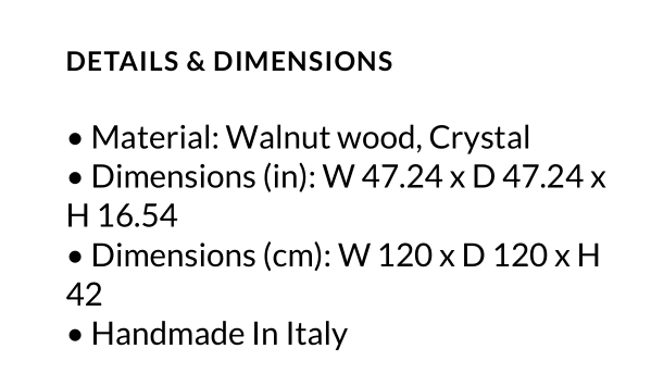 table was crafted of solid Canaletto