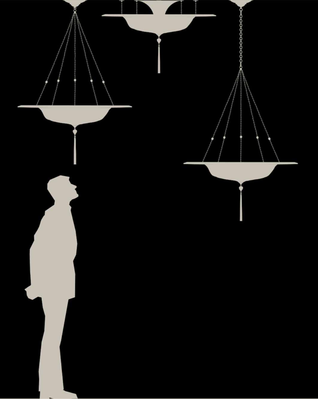 This lamp is ideal for large, sophisticated interiors. The light filters through the silk and penetrates the inlay of the decorative ring to create an evocative atmosphere.