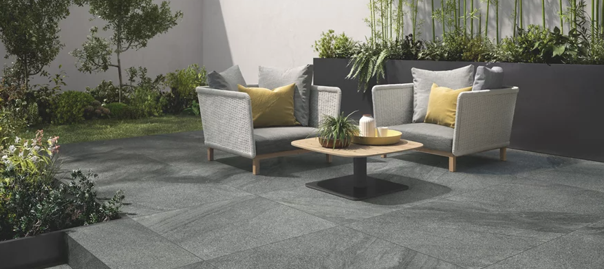 Mit einer belebten Quarzit-Optik ist die Serie MONT BLANC GARDEN ideal für moderne, dezent natürliche Au?engestaltungen. W?hrend die Graut?ne silver, titan und carbon eher puristisch anmuten, sorgt das warm-beige sahara für eine leicht mediterrane Atmosph?re. Eine gro?e Auswahl an Formaten macht die Fliesen ausgesprochen flexibel und vielseitig.