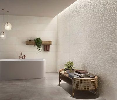 Calm and gentle, wild and rough in one – the RESTONICA wall concept interprets unspoilt nature as epitomised by Corsica’s spectacular Restonica Valley in ceramics. Inspired by the rugged mountain scenery, pools of water glistening in the sun and gushing waterfalls, the concept combines smooth nonvitreous tiles in authentic stone look with an irresistible relief décor.
