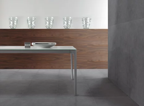 X-PLANE takes a mundane ceramic surface and enhances it to become a design finish with a metallic glimmer. This surface refinement offers a variety of stylish possibilities. The tiles are rectified for laying with very narrow joints. The vilbostoneplus surface finish ensures effective easycare properties from day one.