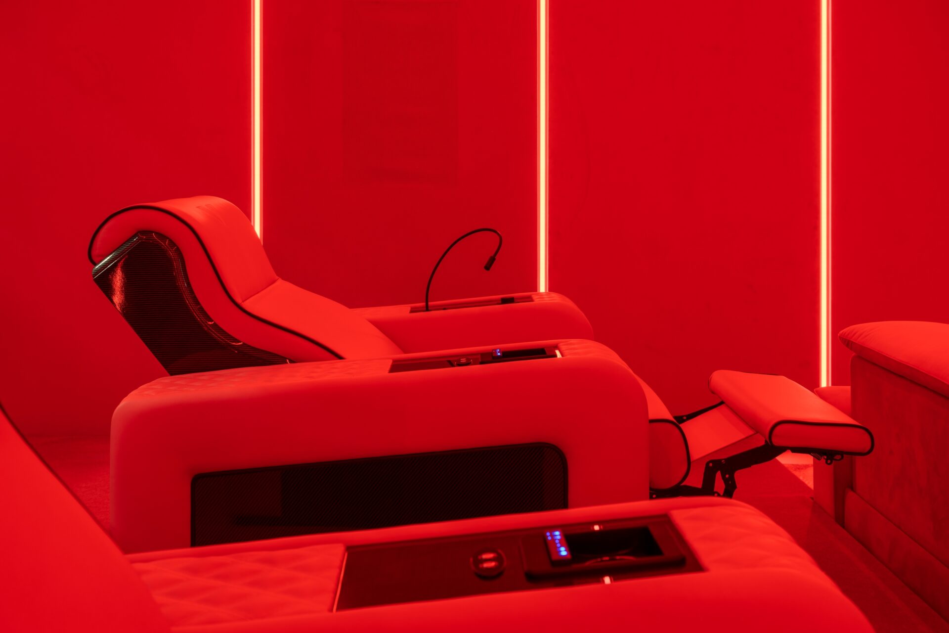 In questo nuovo look la poltrona cinema Luxor assume uno stile audace, ispirato agli interni delle automobili di lusso.