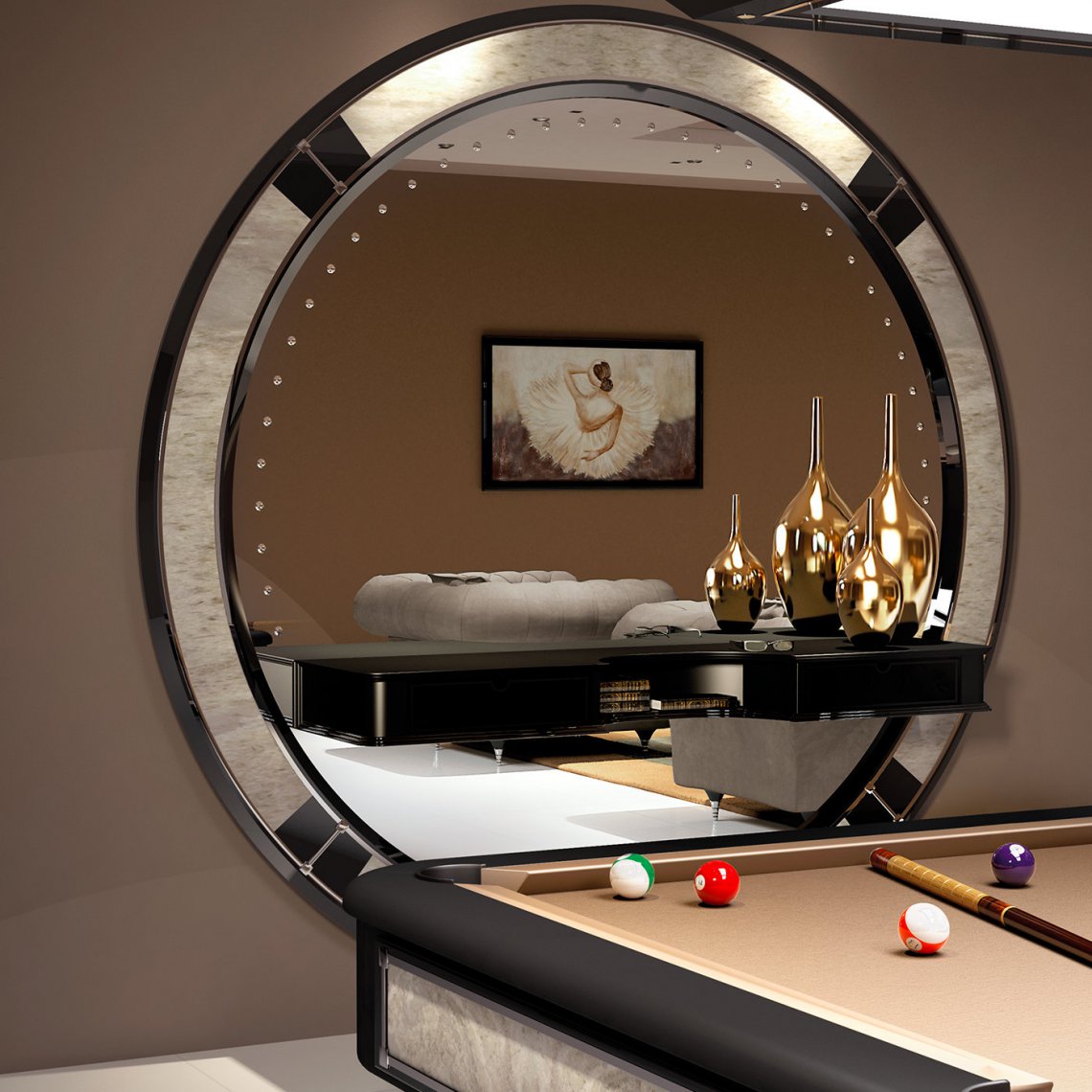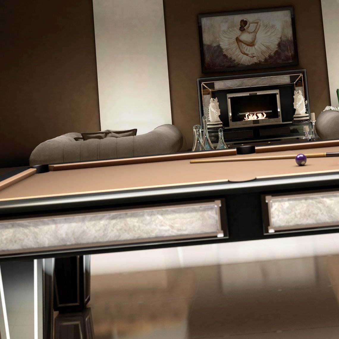 A celebration of the timeless appeal of marble, the Saver pool table is adorned with marble inserts and polished steel profiles. The table's solid wood base is given a glossy black finish, topped with smooth slate and covered with camel-tone Simonis cloth, for a color combination that oozes sophistication. Assembly by Vismara is highly recommended, ask for a quote.