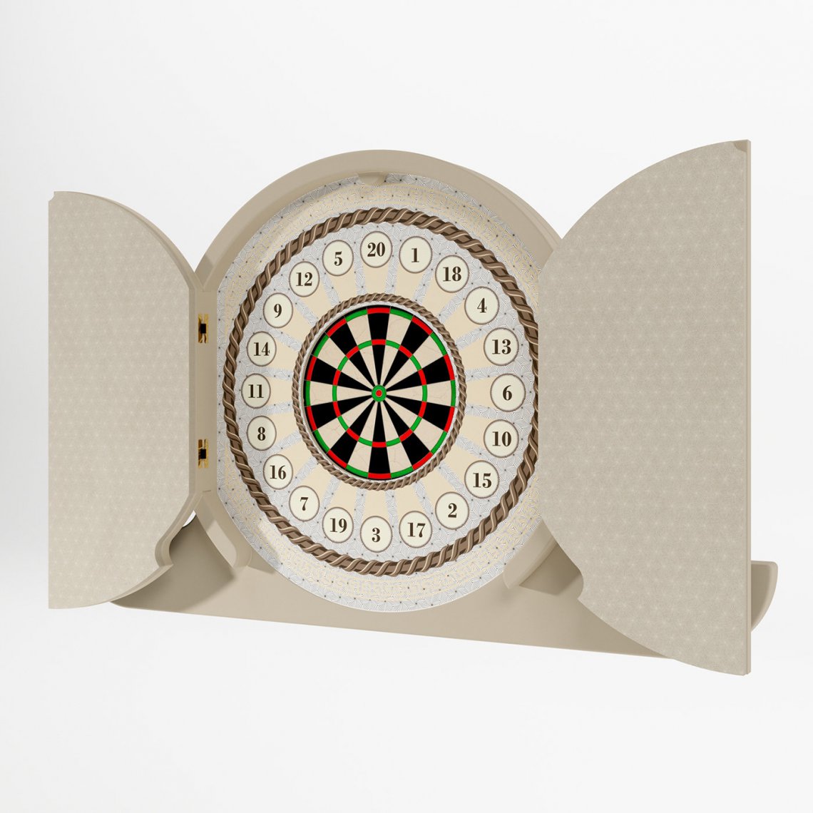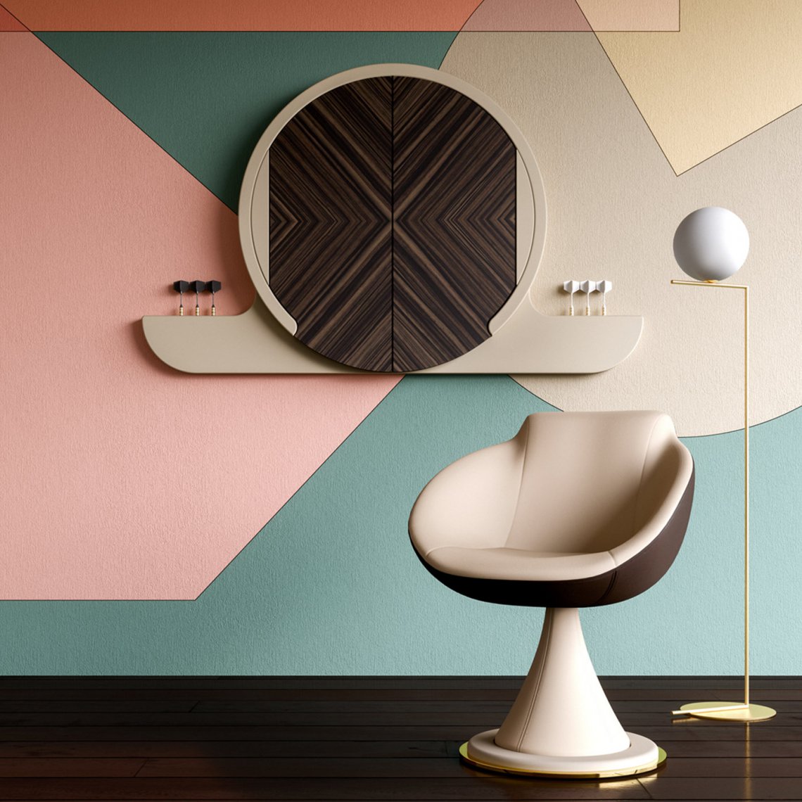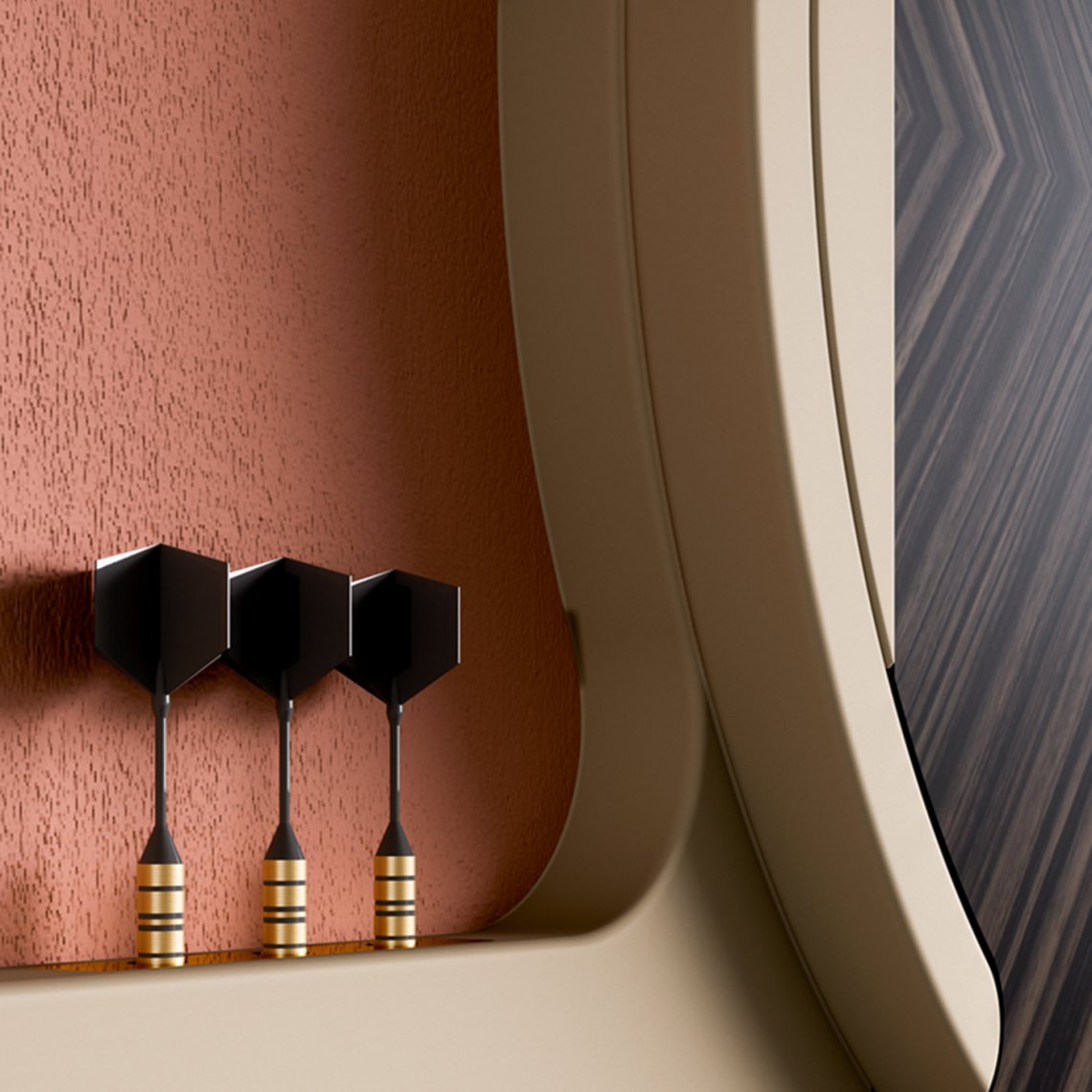 A luxurious piece that will elevate the look of a plush and private game room, this dartboard cabinet is a new addition to the entertainment collection by Vismara. Boasting a lacquered MDF structure, it features two doors covered in Makassar ebony that open up to reveal a target fashioned of African sisal, a natural fiber that does not leave marks on the surface. The piece is enriched with a patterned foam outlining the dartboard and the doors' interior to protect them from unlucky shots. It comes with two sets of darts (6 pieces).