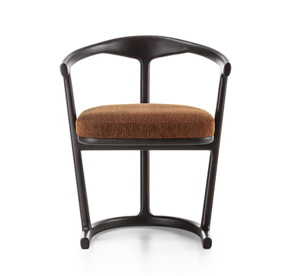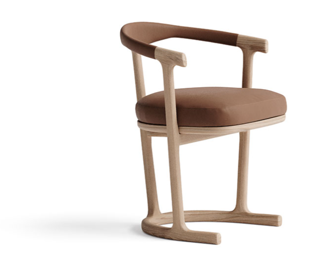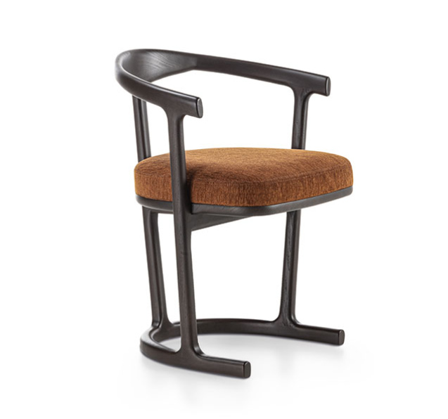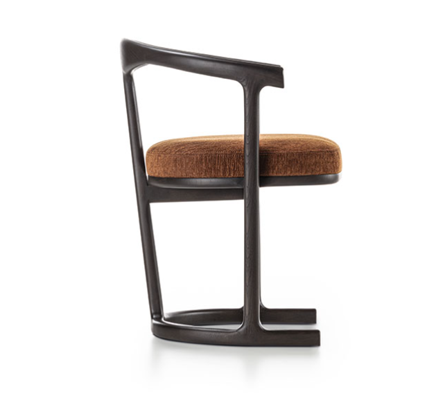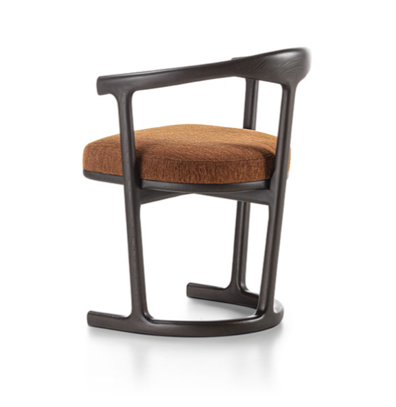 La sedia con braccioli Mora è la nuova aggiunta all'omonima collezione, caratterizzata dalla stessa elegante struttura in legno. La sedia Mora vanta una silhouette senza tempo con dettagli raffinati, dove i braccioli si fondono con la base semicircolare, per una seduta accogliente. A richiesta, un inserto in pelle arricchisce la struttura nella posizione dello schienale. Questo oggetto coniuga comfort e raffinatezza per una forma concettuale e ricercata.