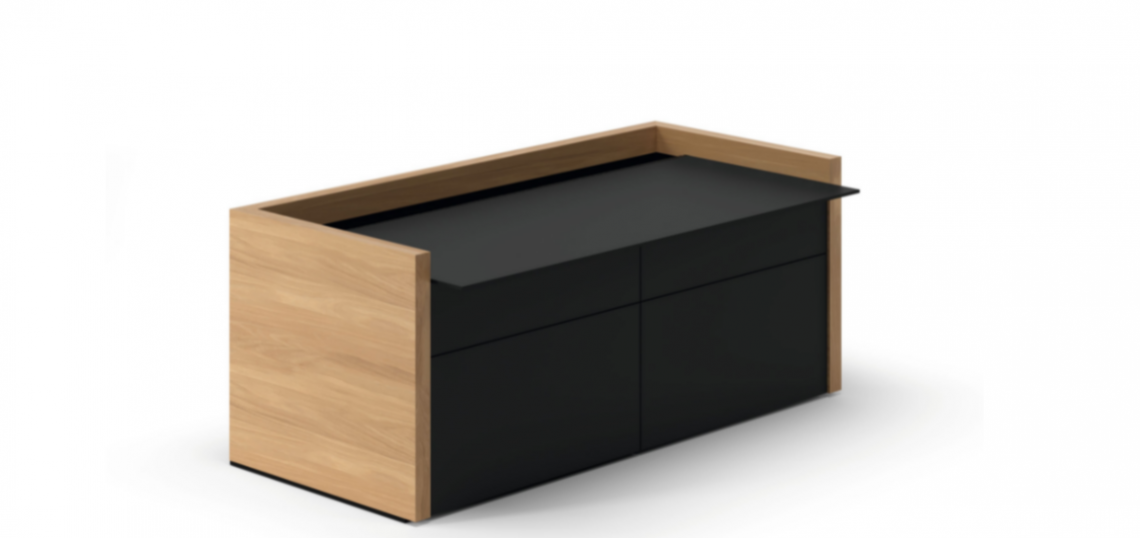 The corresponding storage solution for the Mono-V desk program for the storage of personal items and work utensils. Also available as a container, directly connected to the table.