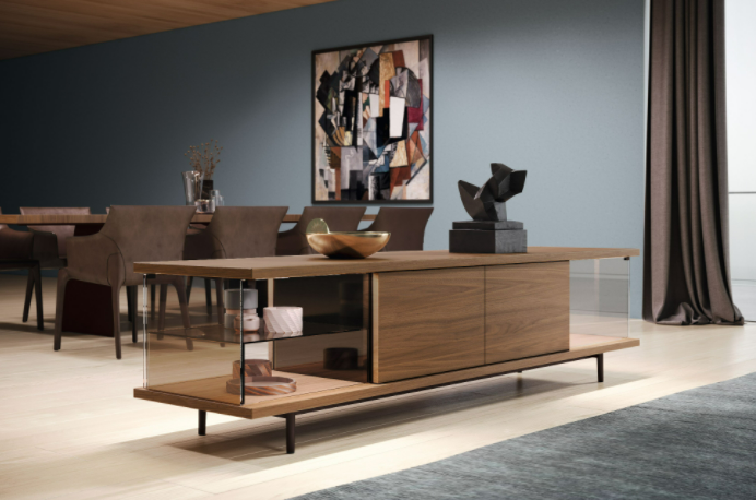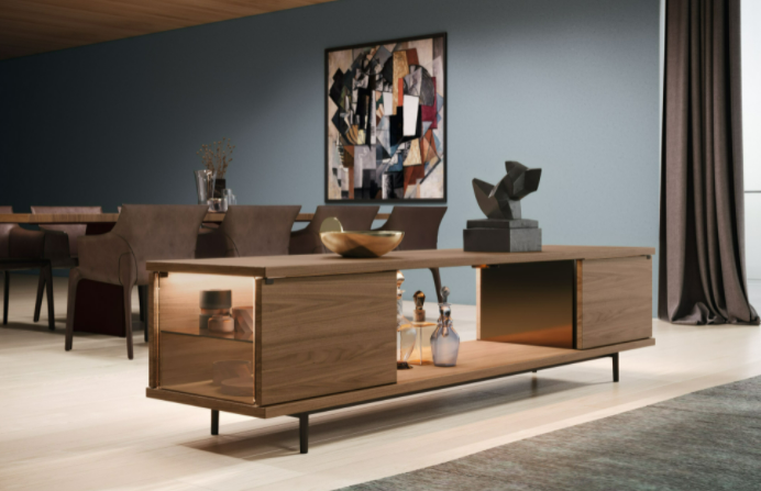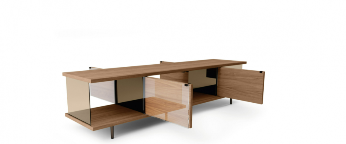 Incredible architecture and structure: The mirrored drawers and doors of The Farns can be opened 180 degrees. A furniture piece with many faces, for countless lighting moods – The Farns is a sideboard or buffet table, a highboard or lowboard, a cabinet or bar, a shelf or a body of light.