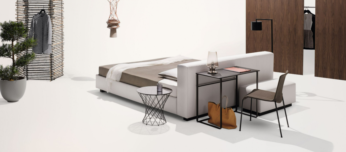 Nighttime storage for book and personal items near the bed. Functional and elegant, the swivel box guards personal treasures you like to keep hidden. This side table completes the comprehensive Yuuto sleep system comprising bed, banquette, and console.