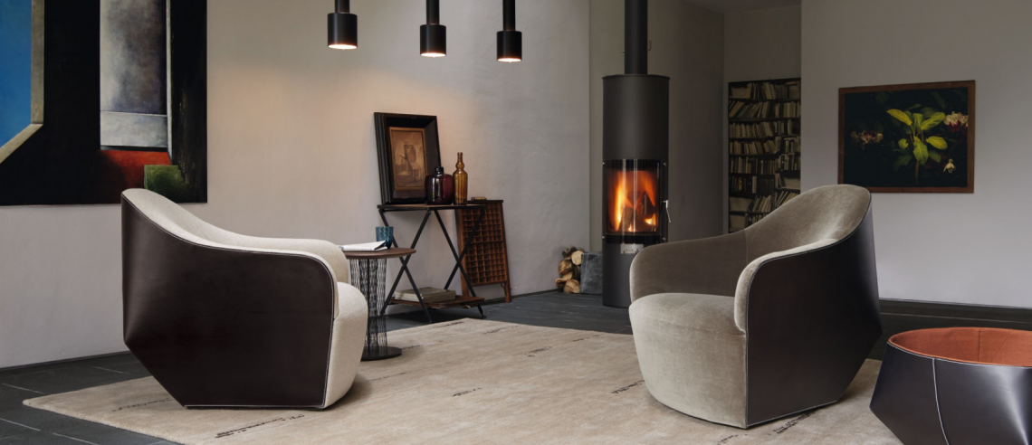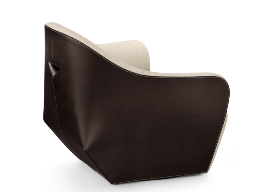 Perfect workmanship and craftsmanship in upholstery: striking saddle leather and fine fabrics meet up in clear, flowing lines with this chair of an exceptional size. Inviting in hotels, showrooms and living rooms, as a standalone piece or in a group with the corresponding upholstered seat, occasional table, or basket.