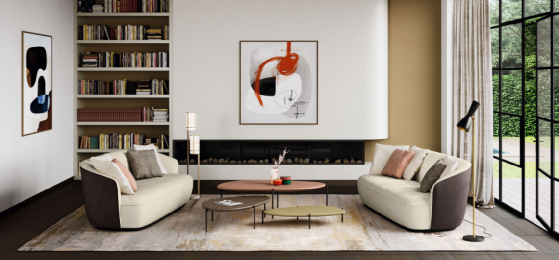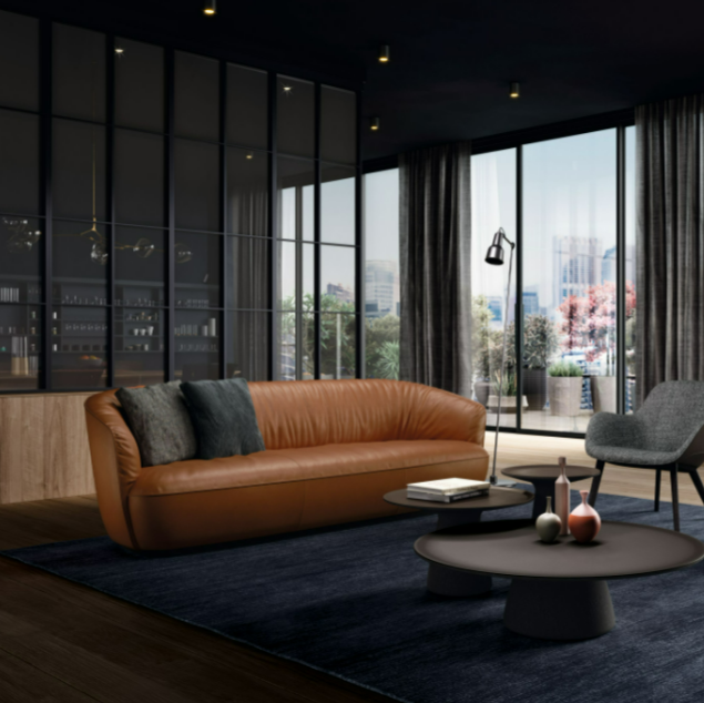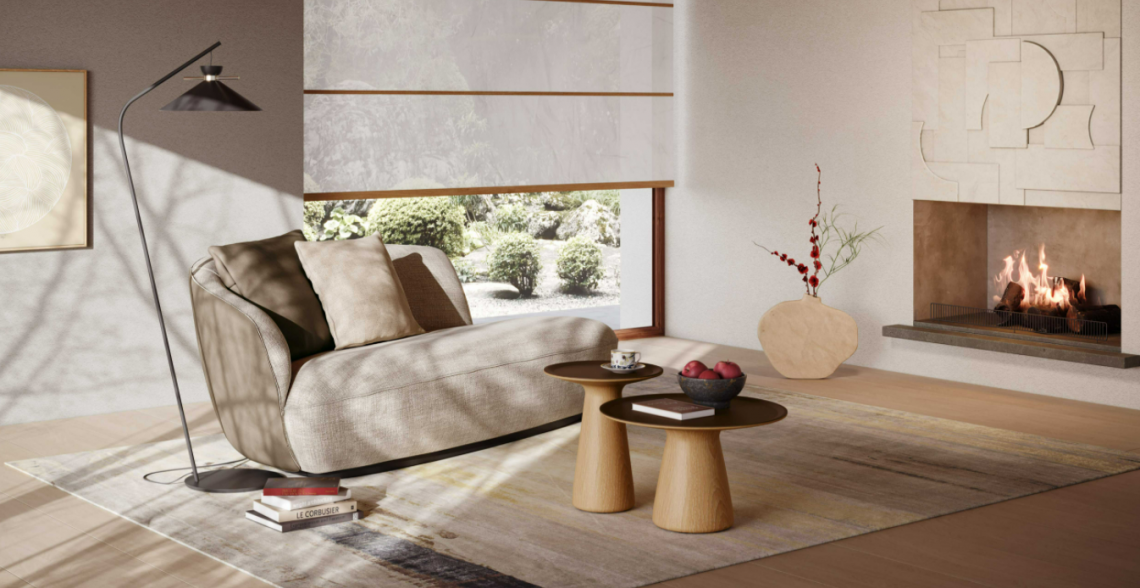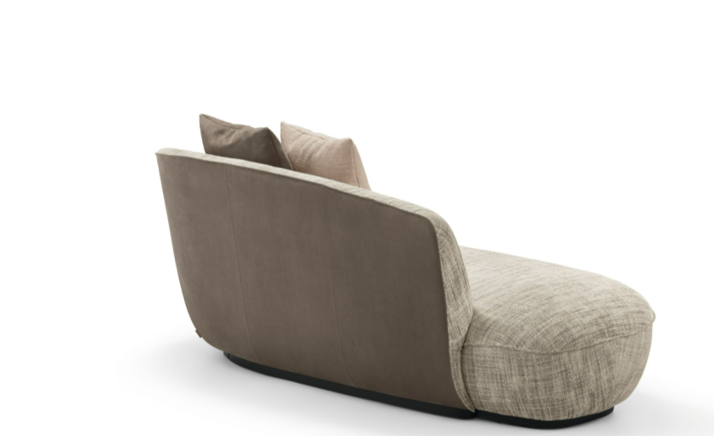 The récamiere from the Ishino family: a place you will love to relax in. A generous seat, inspired by the classic chaise longue. The récamiere opens to one side, giving a clear view of the room.