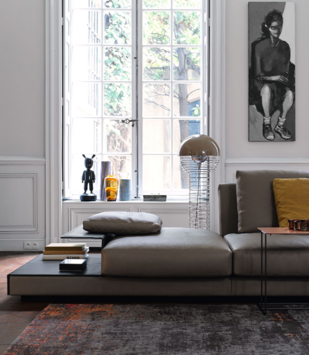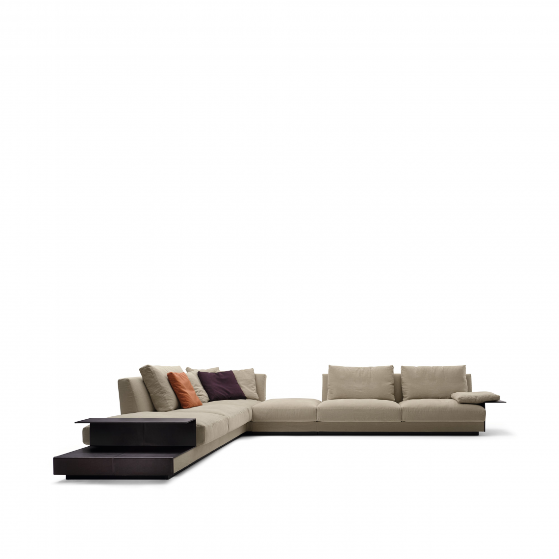 Precise lines, honest craftsmanship, fine materials – the Grand Suite Sofa collection represents both the special and the personal. Its generous, soft cushions ensure exceptional comfort. The horizontal line of the upholstery overflows the armrests and shelf.