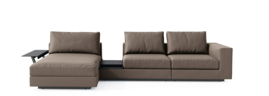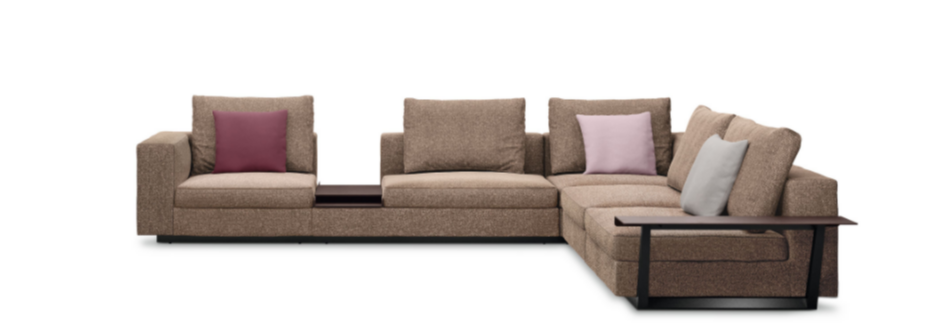 Life with a 360-degree perspective: a sofa collection where the living experience can change direction. The end and corner units can be rotated 90 degrees. The high-quality, soft upholstery invites you to relax, while the integrated trays provide practical and beautiful storage areas.