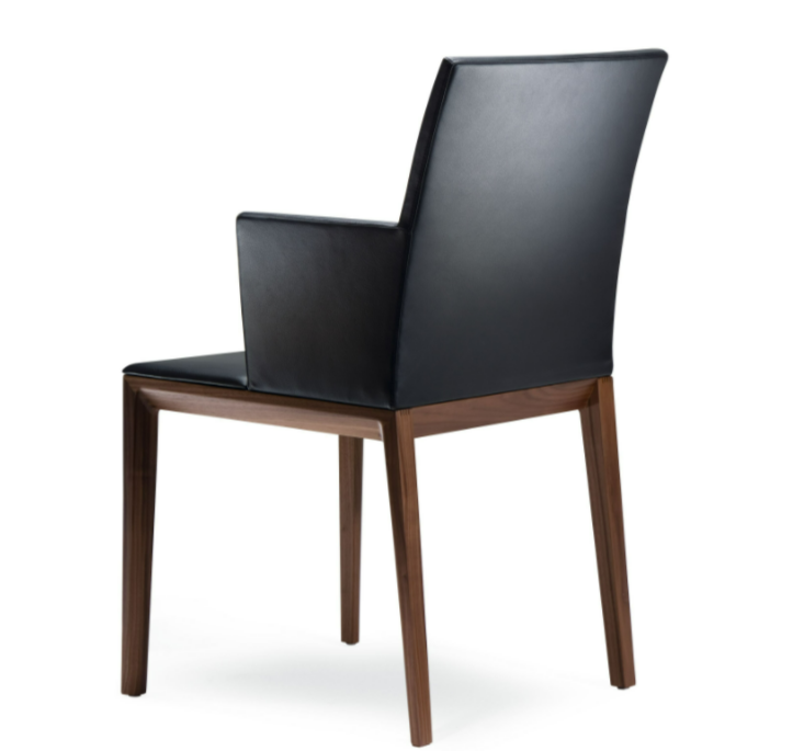 The soft leather of this chair appeals to those who sit in it, while solid wood ensures stability. The elastically springy back and the pocket spring cores in the seat offer the seating comfort of an armchair. Designed for extended periods seated at dining or conference tables.
