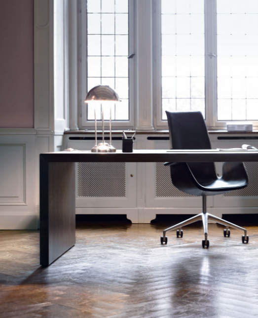 The original FK design: clear contours, perfect lines – volume and lightness on a triple star base, with or without castors.