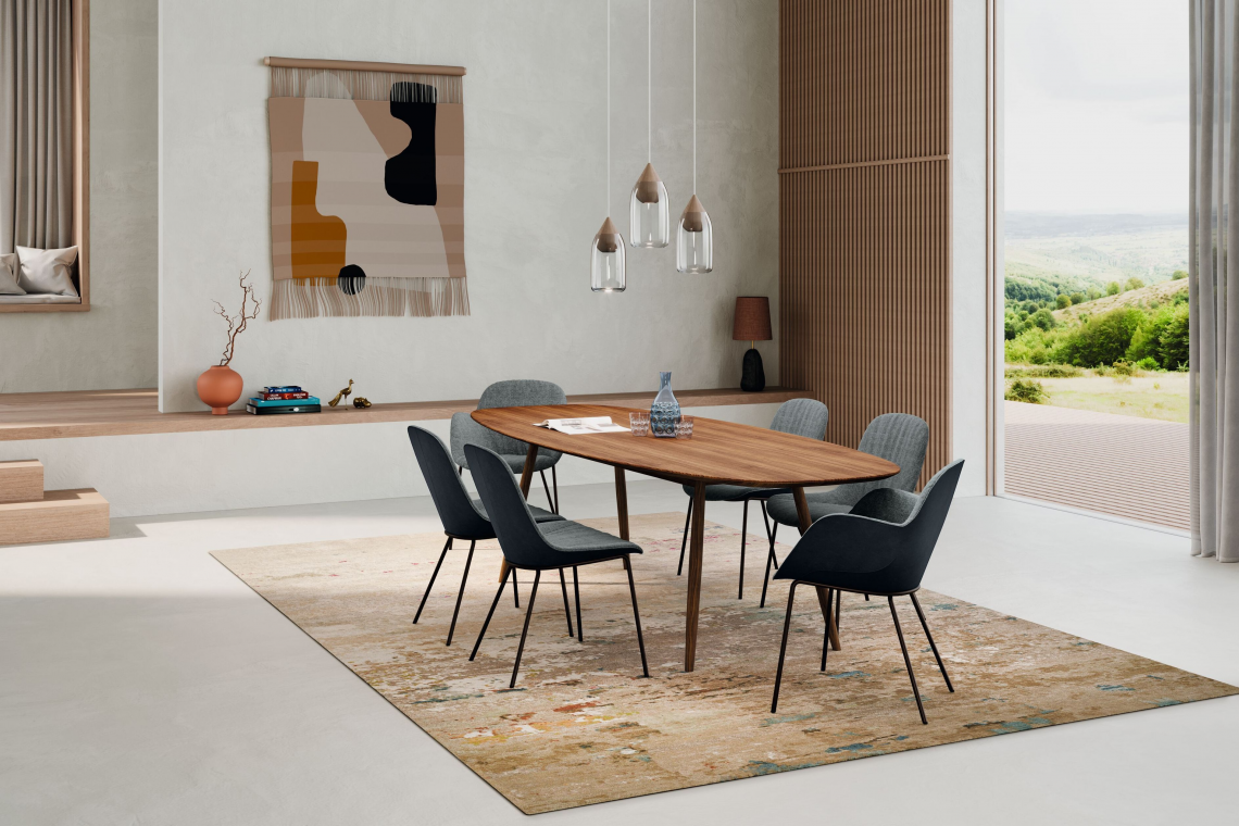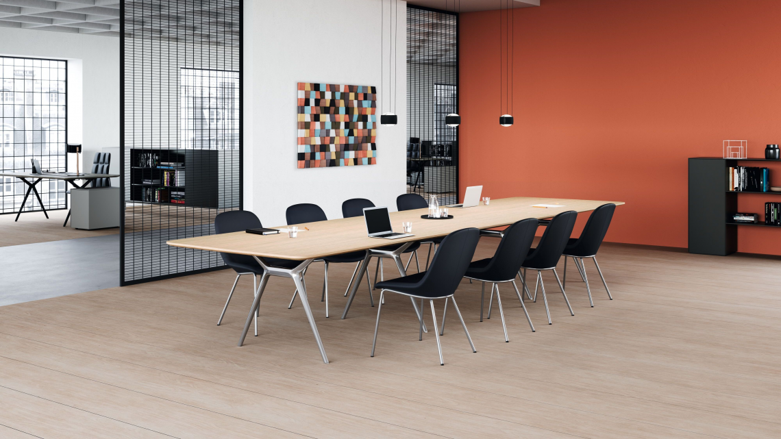 An elegant, comfortable chair that effortlessly brings together work, life, and feeling good. Thanks to new chAIR technology, this breathable shell chair offers a light and airy sitting experience. For hours of conversation – with family, as a guest among friends, in meetings, or at a conference.