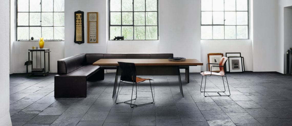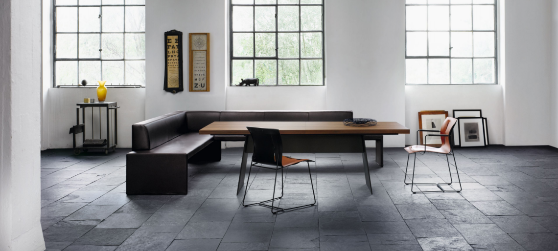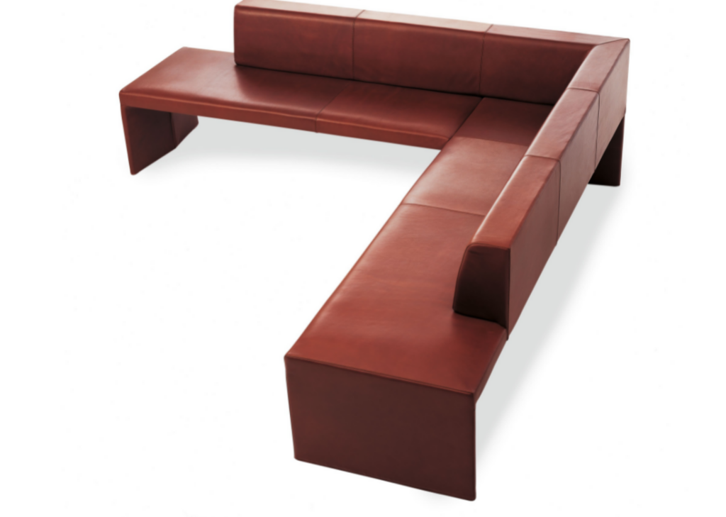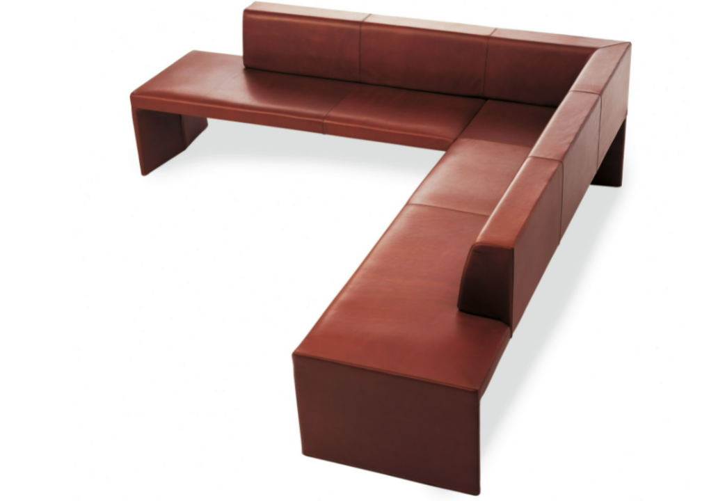 A reinterpretation of the classic corner seat as a sculpture of architectural clarity with the seating comfort of a well-upholstered piece of furniture. Its handsome appearance freestanding in a room defines the place where people come together – in private or in public. Available in various lengths or simply as a bench.