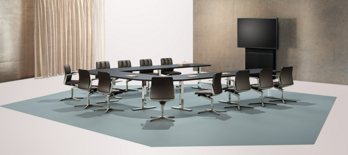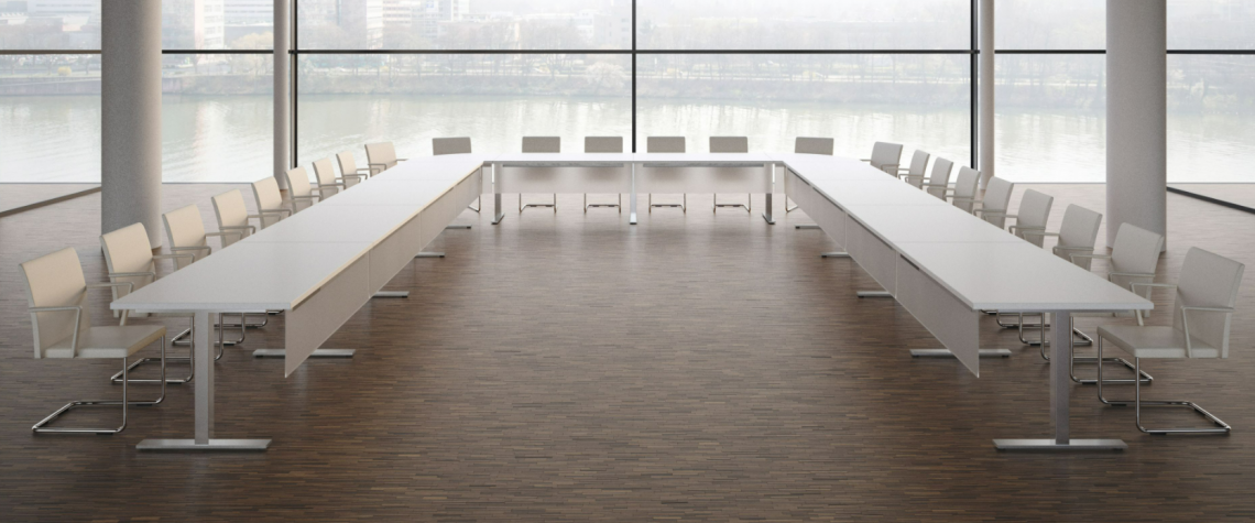 The minimalist, modern appearance of the versatile conference table unites prestigious design with functionality. Frame Lite is also available as executive desk.