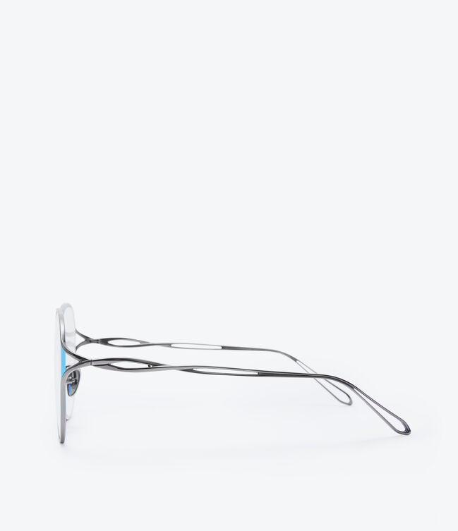INFINI Eyewear - cast hand-polished stainless-steel frame with tinted lens and bespoke pouch.