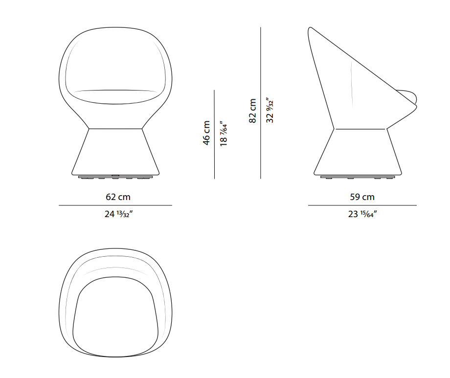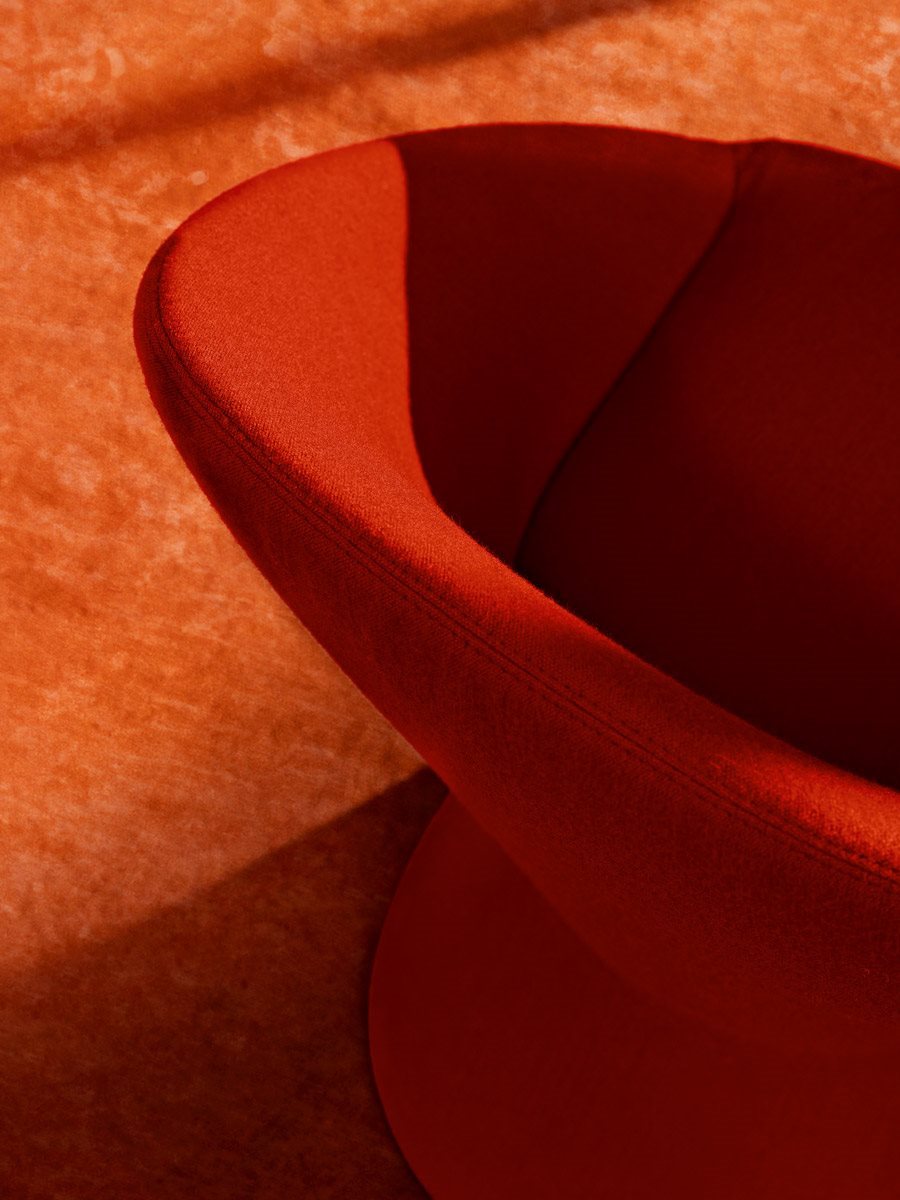 Fully upholstered in fabric, the Giuno armchair offers great comfort thanks to its enveloping seat with a hint of an armrest, making it particularly comfortable as a dining chair. The version with a rotating base adds an element of practicality without compromising the purity of form.