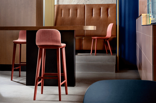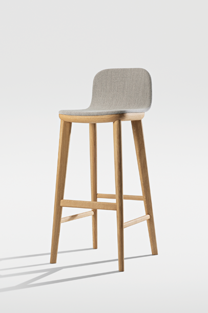 AEON BAR, an icon of timeless design and modern elegance. The puristically shaped wooden shell impresses with its minimalist sophistication, while the upholstered version creates an exciting material contrast that blends seamlessly into the shape. The continuous integration of the compact armrests is not only found in the chair, but also in the AEON BAR bar stool. The result is a chair family that is suitable for a wide range of applications – whether in the contract or residential sector.