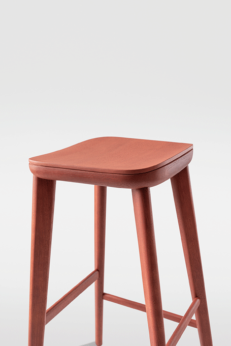 AEON STOOL – timeless elegance in its purest form. The AEON STOOL consistently continues the minimalist design language of the AEON BAR, but dispenses with the backrest, giving it an even clearer silhouette. The precisely shaped wooden shell impresses with its purist aesthetics and is complemented in the upholstered version by an exciting material contrast that blends harmoniously into the overall picture.