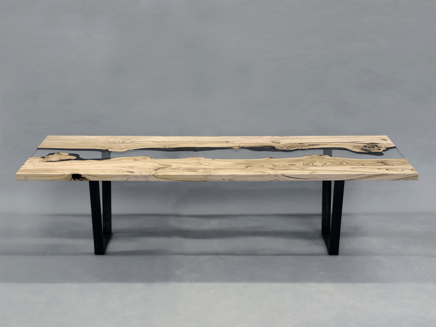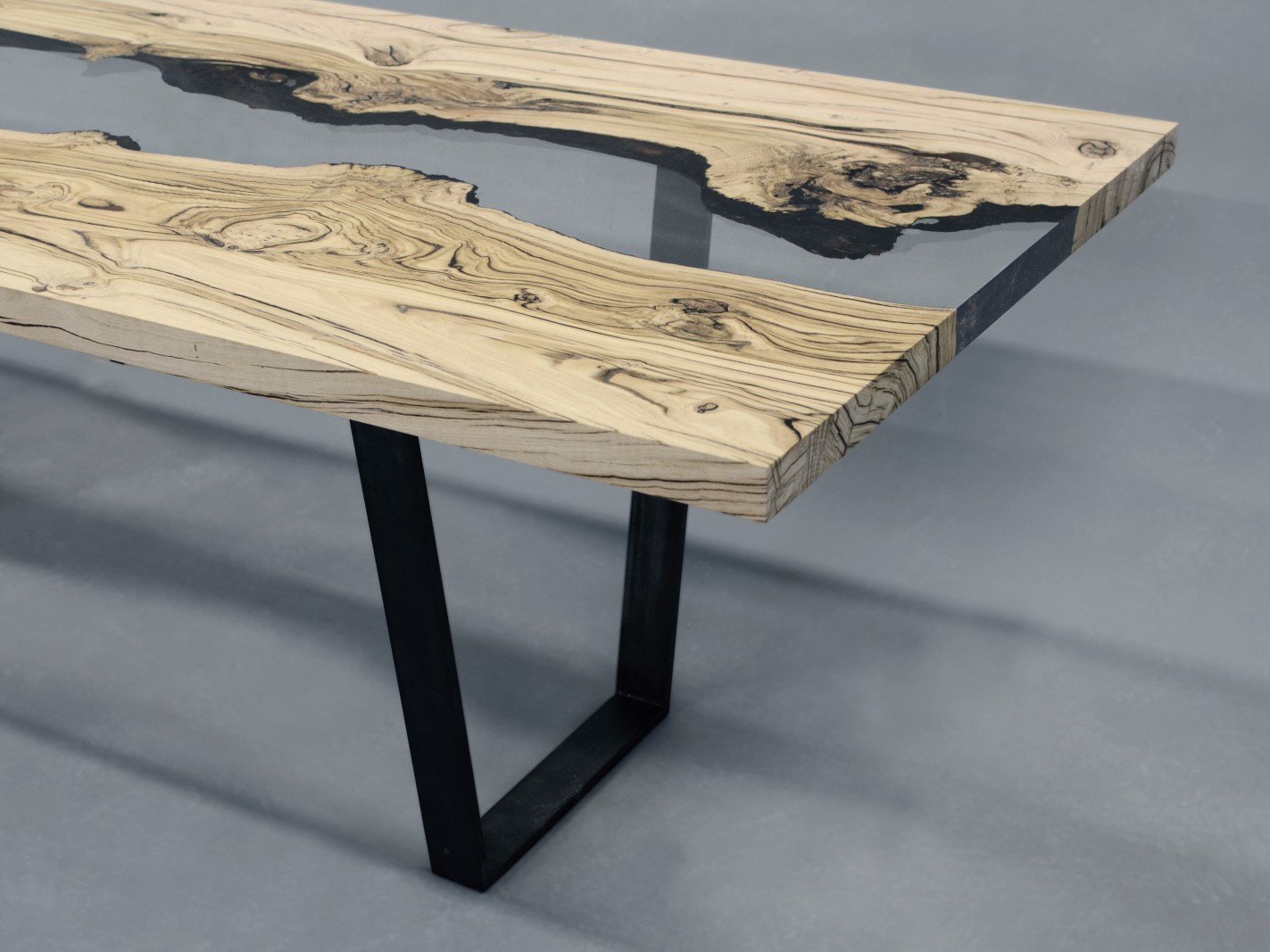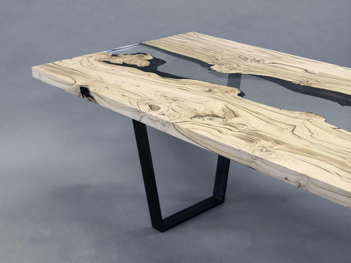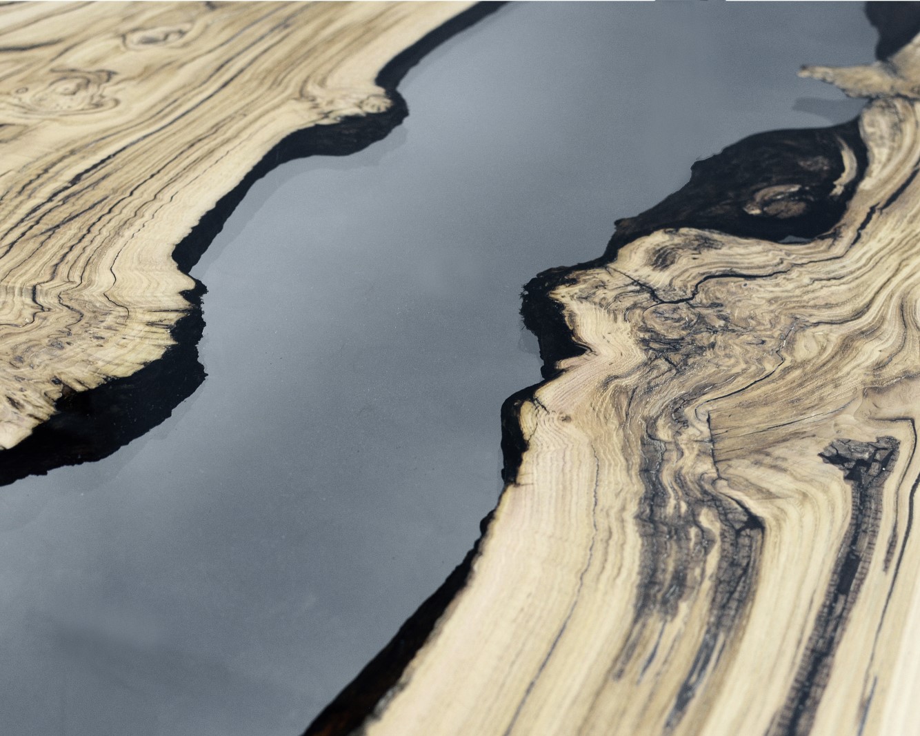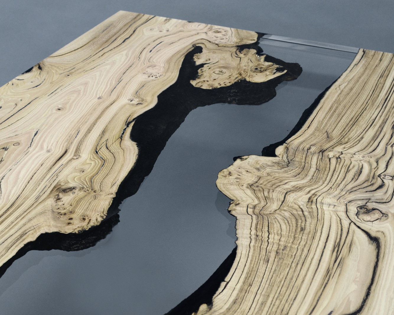 Natural Wood surface not covered by resin on the section planes. Selective wood coating with matt natural effect.