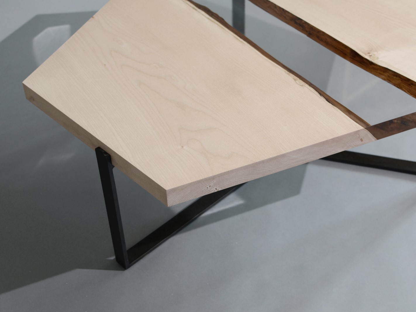 The Crystal Wood Trio is inspired by the process of crystal formation and growth that extends in many directions and heights, with the aim to connect the organic shapes of wood with the rigid geometries of the minerals.