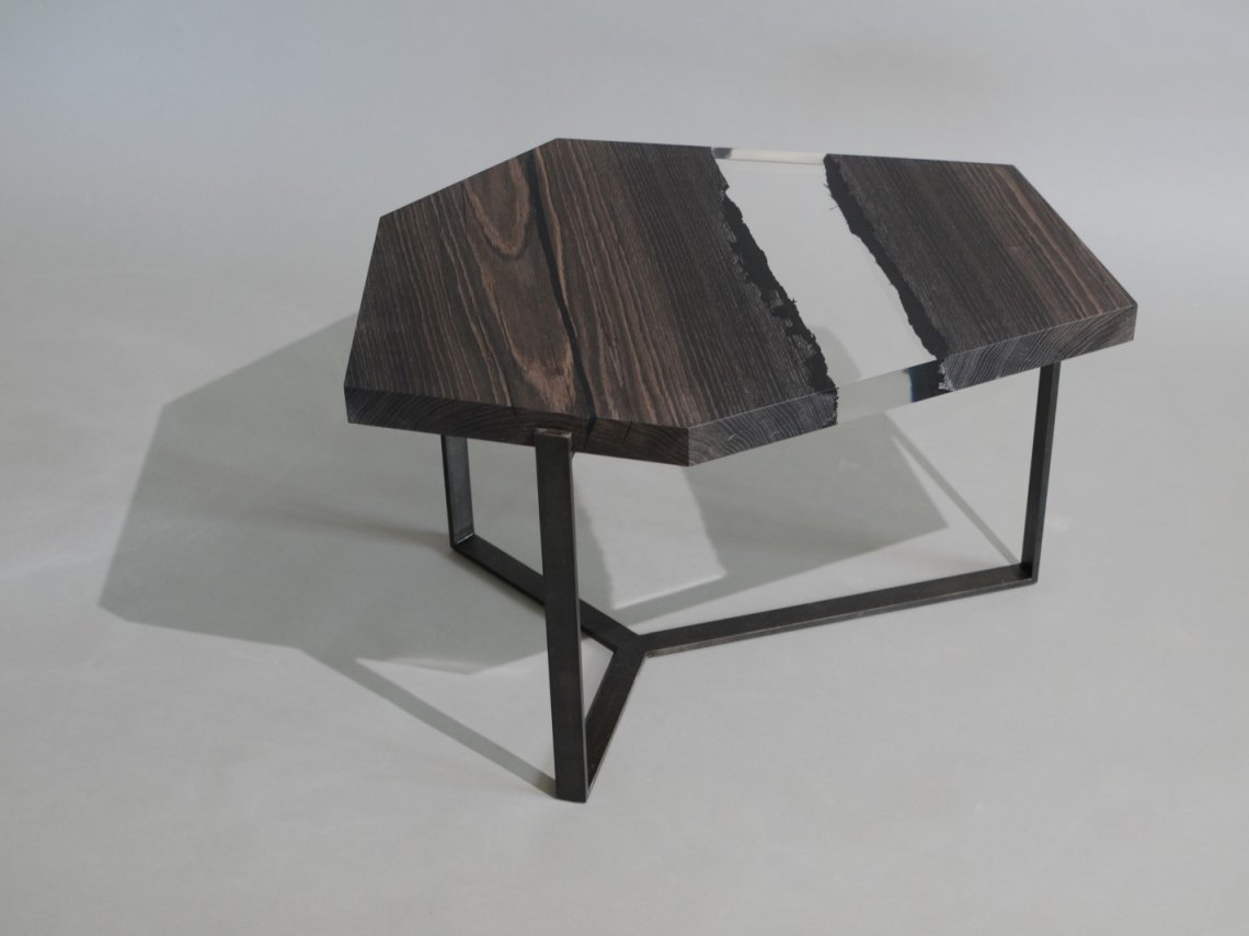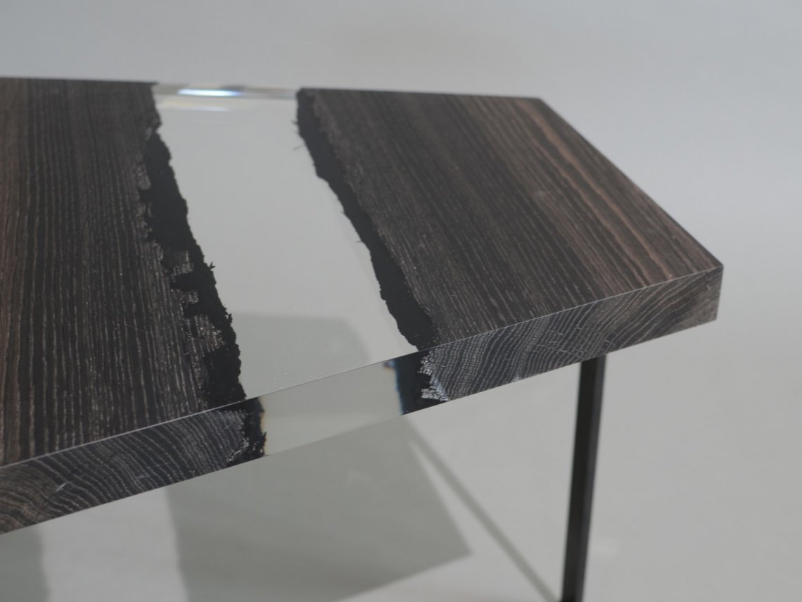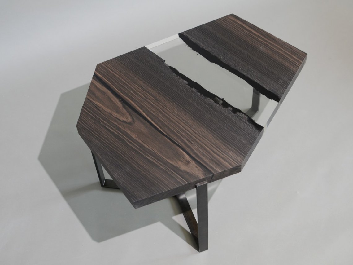 A special crystalline resin fill the gaps between the wood live edges completing the prisms and preserving their story.