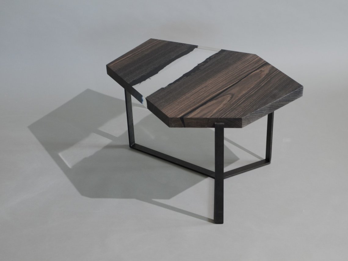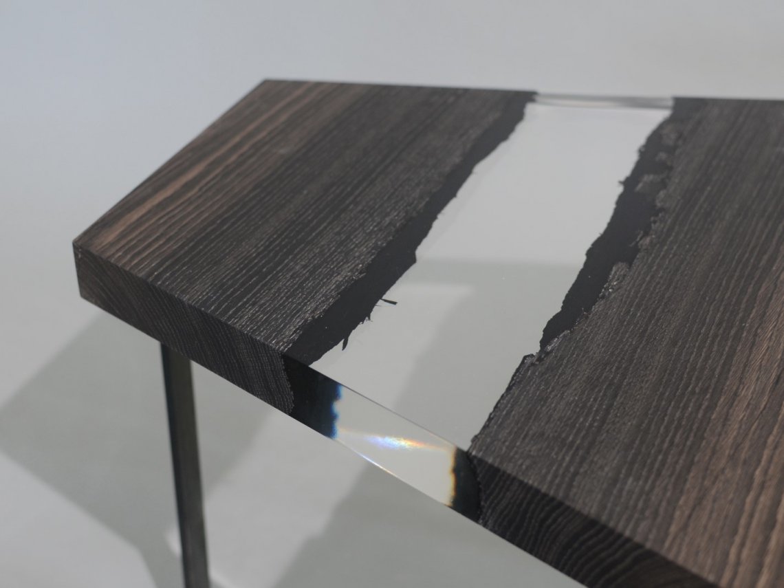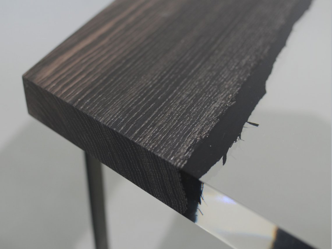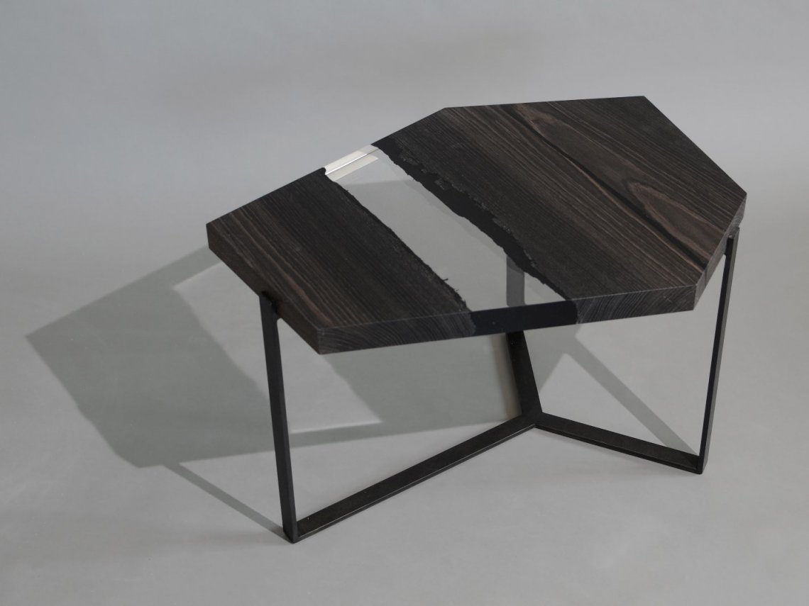 A special crystalline resin fill the gaps between the wood live edges completing the prisms and preserving their story.