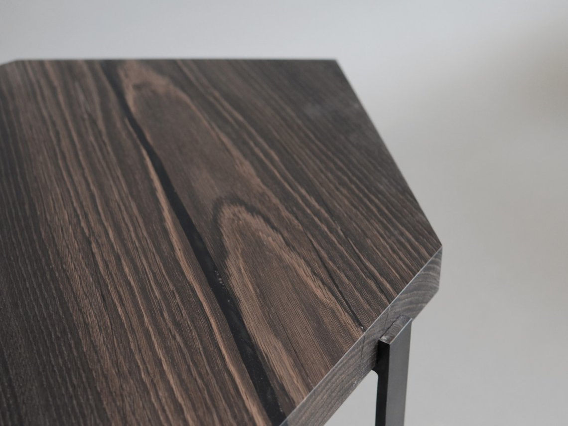 The Crystal Wood Trio is inspired by the process of crystal formation and growth that extends in many directions and heights, with the aim to connect the organic shapes of wood with the rigid geometries of the minerals.