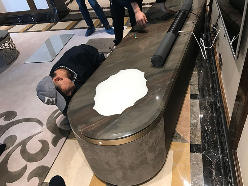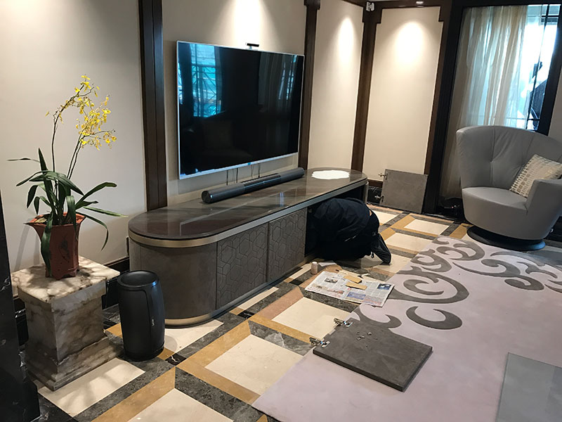 意俱工作人員正在組裝戶主選擇的LONGHI VICKY系列廳柜。