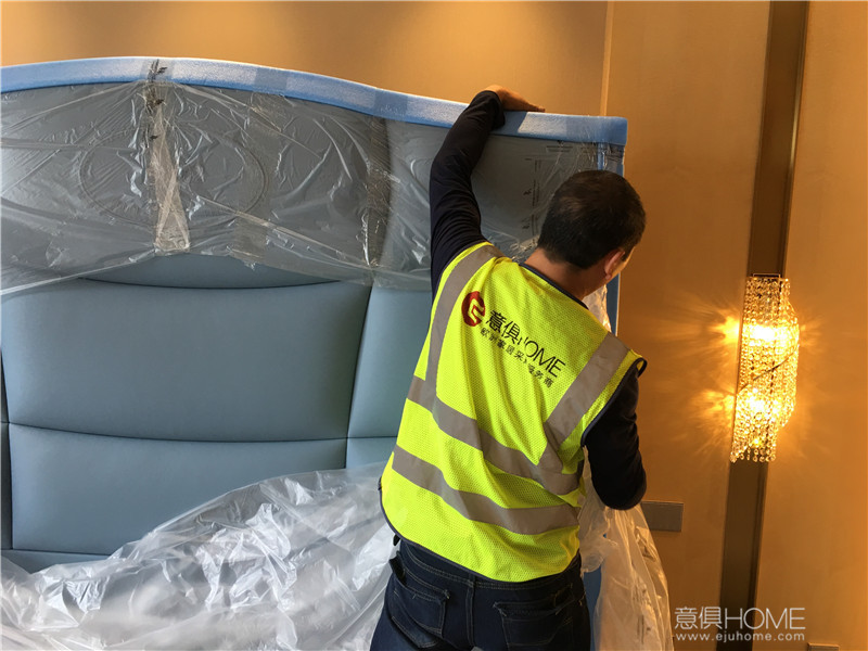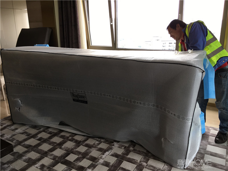 意俱師傅正在拆FENDI ASJA床尾凳的包裝。