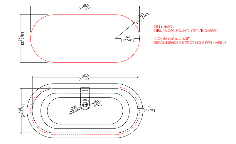 The impressive roll top lends a distinctive classically-inspired elegance to this built-in bathtub in White Tec, which retains the comfort and style of the traditional cast iron built-in bathtub, reinterpreting it in an innovative material in the ideal size for modern spaces.