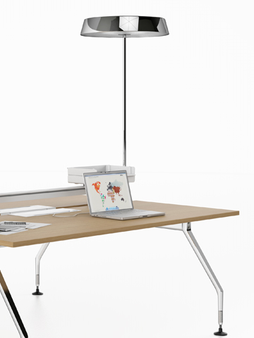 As a suspension, floor, curved or table light, the rounded form of the belux koi harmonizes with all room designs. Despite its large body, all belux koi versions are floating, vibrant and elegant. In addition to the metalized or white head surface, slim chromed rods for standing or suspension lights are also available. The suspension light can be shortened to any length to fit easily into small alcoves with sloping ceilings. The painted white steel or aluminum base, in the shape of an elegant cross, provides optimum stability and is ideal for any table environment and – with its rounded head – can be placed anywhere. With its many variations, belux koi blends perfectly into most office desk systems. The belux koi LED version boasts a longer lifespan, improved energy efficiency, and a sophisticated control system. Direct and indirect light can be separately distributed, allowing belux koi LED to adapt to its environment and to the needs of the user.