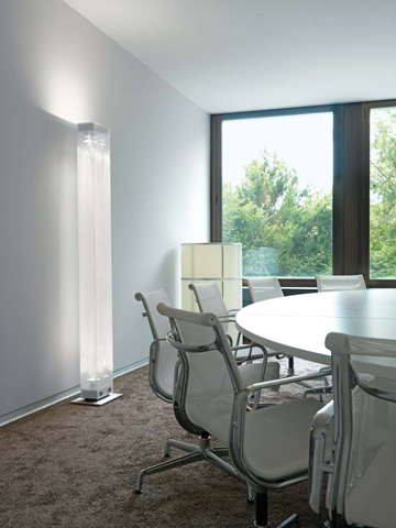 Inside the artificial glass body there are LED lamps at the top and at the bottom, emitting light towards each other, so that belux twilight turns into a light sculpture. With an additional LED spot belux twilight gives out indirect room lighting via the ceiling. The indirect light and light inside the art glass body can be dimmed independently of one another.