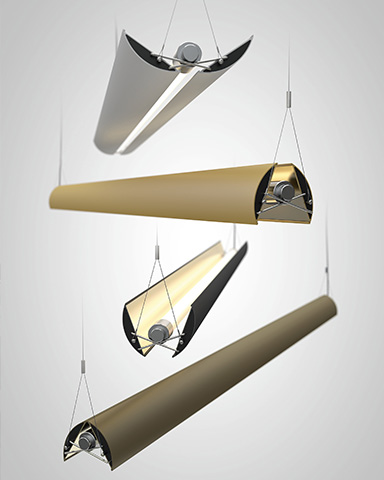 More than 20 years after it was first designed, belux updown’s ingenious adjustment mechanism is still as fascinating as ever. New features include the upgrade to LED lights and the four colours natural aluminium, gold, olive, and black. The reflectors can be moved into the desired position using just one hand thus enabling various different lighting moods to be created. The variety of possibilities ranges from exclusively direct, focused light to abundant, indirect light that fills an entire room. On account of this versatility, belux updown is particularly well suited for use over a family table or dining table or even a desk or a counter.
