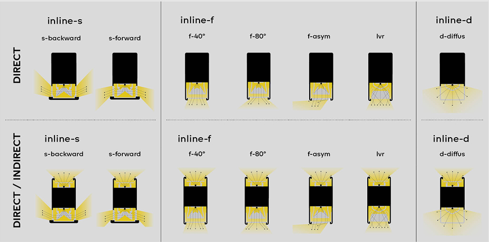 belux inline neo is a sophisticated linear lighting tool. The hart of the system, the integrated optics, direct the light with precision to the desired surfaces. Powerful direct and/or indirect light, different mounting options and made to measure lengths make from belux inline neo a unique lighting tool that enables to create a whole range of different lighting scenarios, from diffused general light to homogenous indirect light to direct accent light. belux inline neo offers a wealth of new applications and simultaneously strengthens the bonds between architecture and lighting, supporting the planner’s creativity.