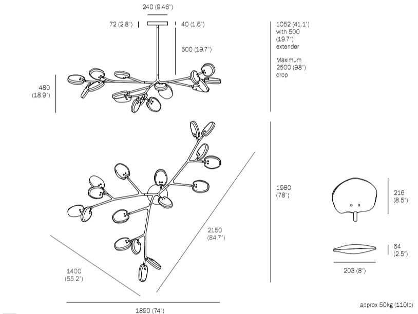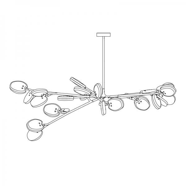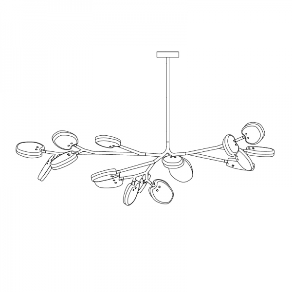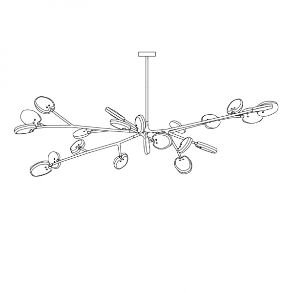 A stainless steel armature system in a soft-touch matte black finish allows pre-composed branches to be easily connected to a series of hubs during installation.
