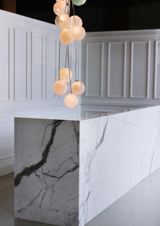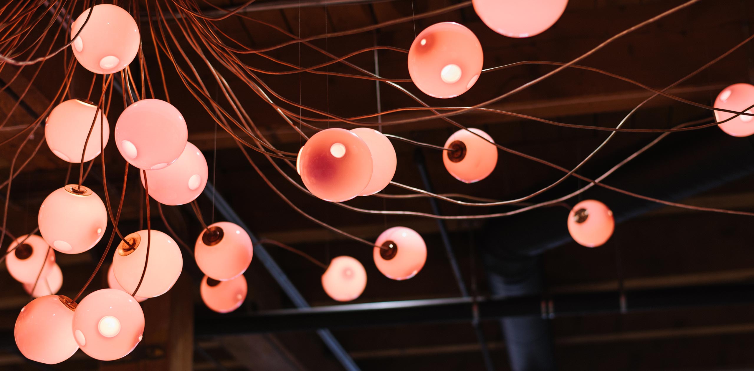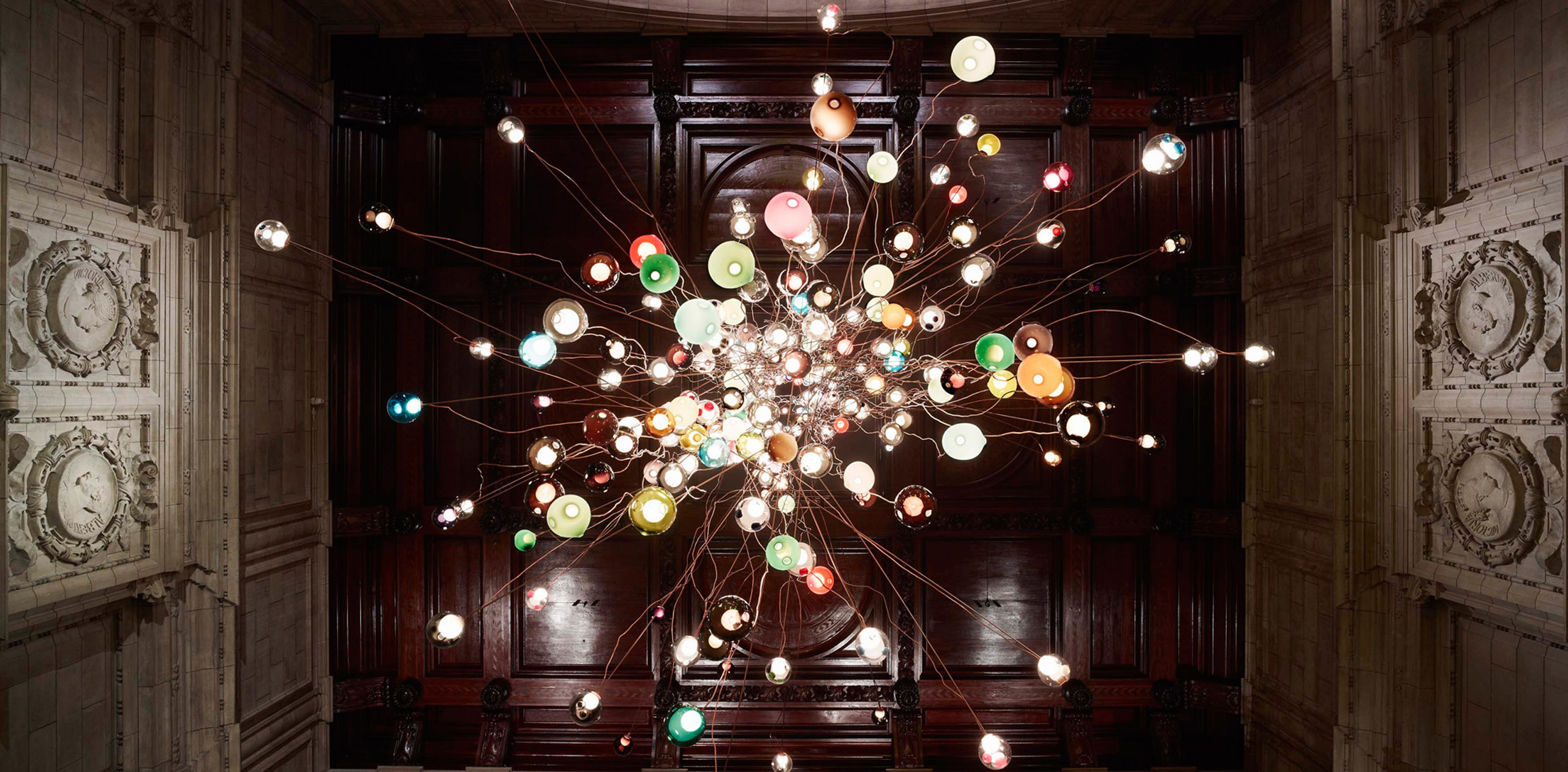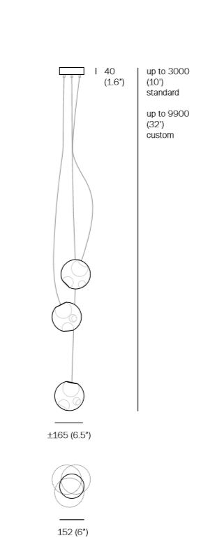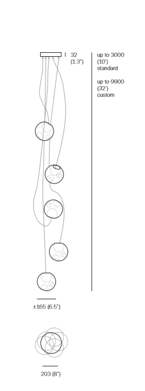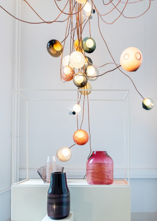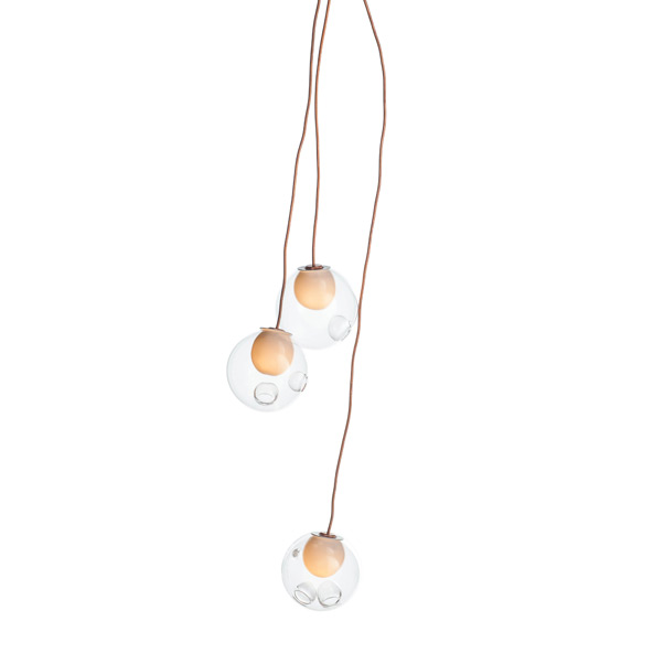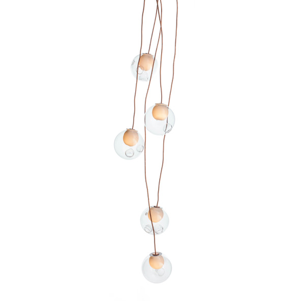 A flexible copper suspension option (in natural copper or white powder coat) is available for all 28 pendants, providing a different compositional reading and a range of sculptural forms.